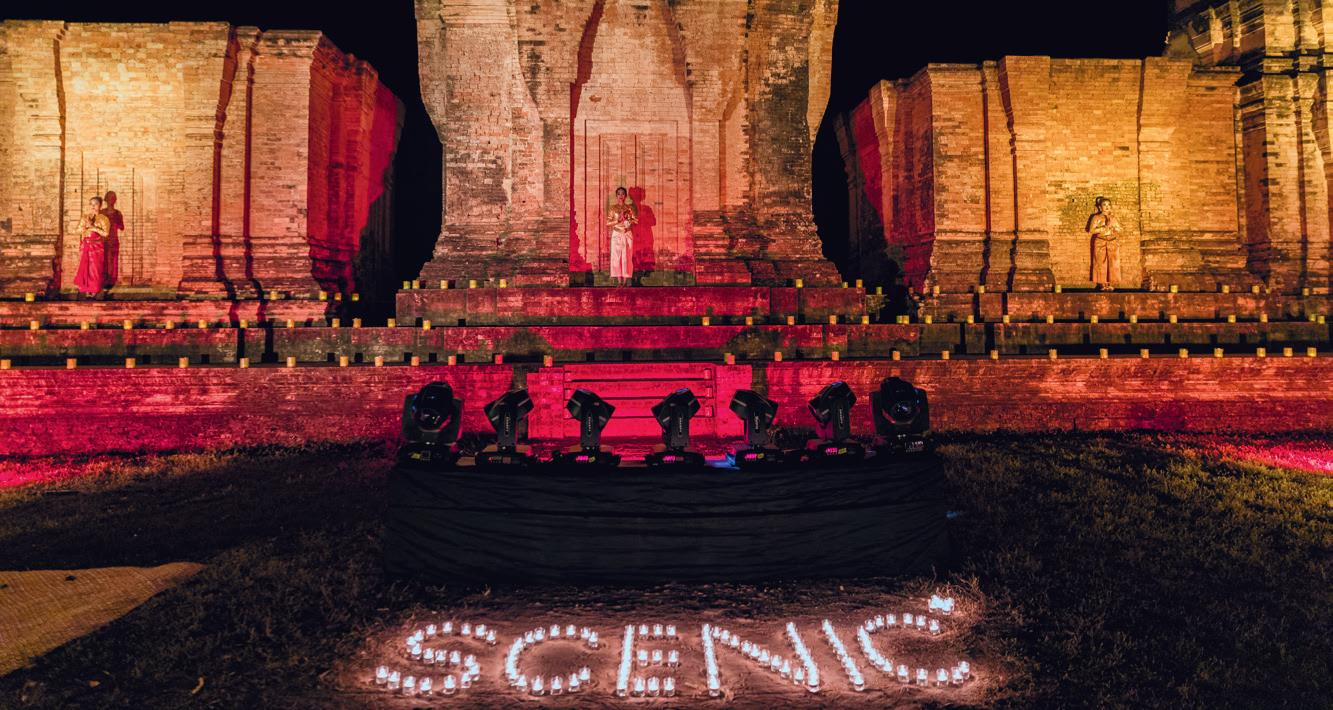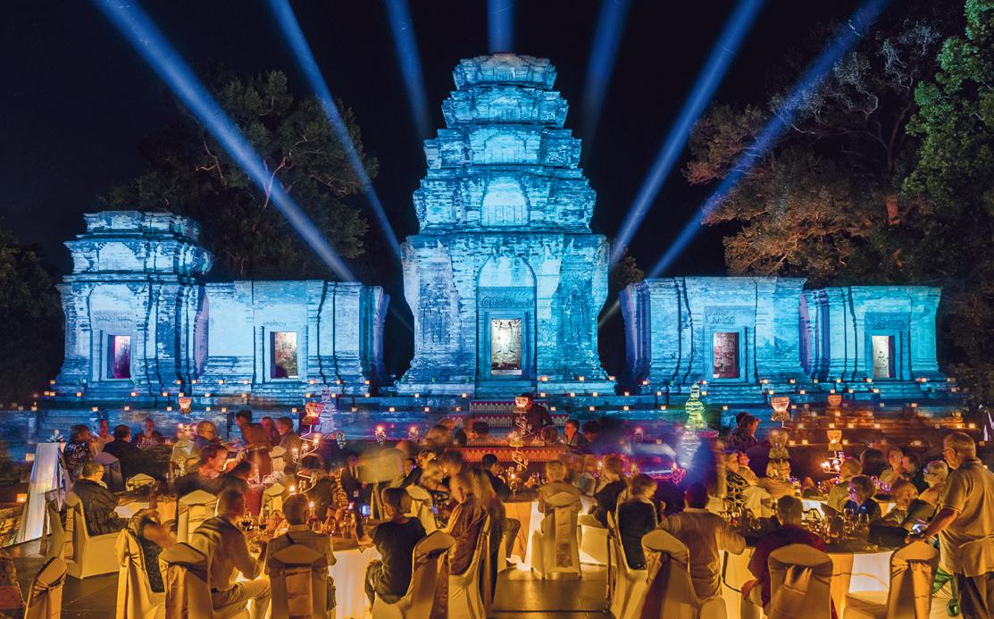 A mystical-themed Gala Dinner in front of candlelit temple ruins in Siem Reap