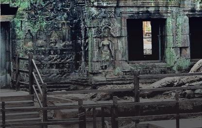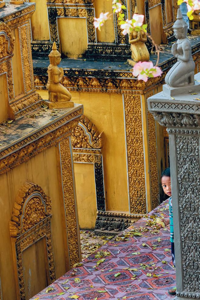 “While visiting one of many beautiful temples in Siem Reap, a shy boy peeked out to watch us.”