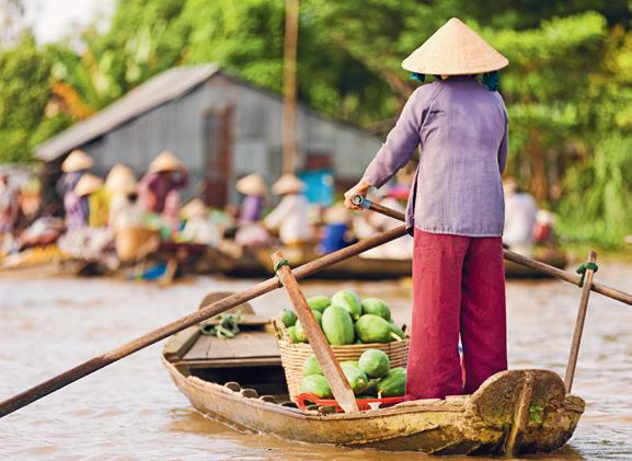 The vital Mekong River is an important lifeline to nearly 60 million people throughout South East Asia. This fastflowing river transports sediment downstream which improves soil fertility for farmers. This sediment in motion creates the river’s signature muddy appearance. It is not dirty water, in fact, the brown colour means the surrounding farmlands are being nourished.