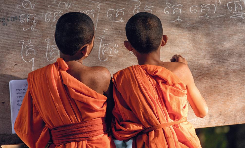 “Visiting another amazing temple in Cambodia, we came across an outdoor class for young monks.