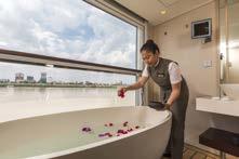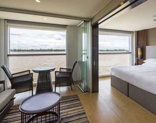 Featuring the largest lead-in suites on the Mekong, all suites on Scenic Spirit are one-bedroom balcony suites with separate living room, walk-in wardrobe and Scenic Sun Lounge. With a mini-bar restocked daily, luxury queen-sized Scenic Slumber Bed, and personalised butler service, you’re assured an exceptional experience in every suite. Enjoy nightly turndown service with gifts, complimentary Wi-Fi, in-suite safes and selfservice laundry facilities. Diamond Deck suites also include special privileges as detailed.