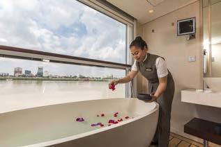 After an exciting day exploring the mighty Mekong River, return to your personal retreat. Each spacious suite features the finest luxury amenities and butler service. Relax and be immersed in the diverse scenery along this spectacular waterway.
