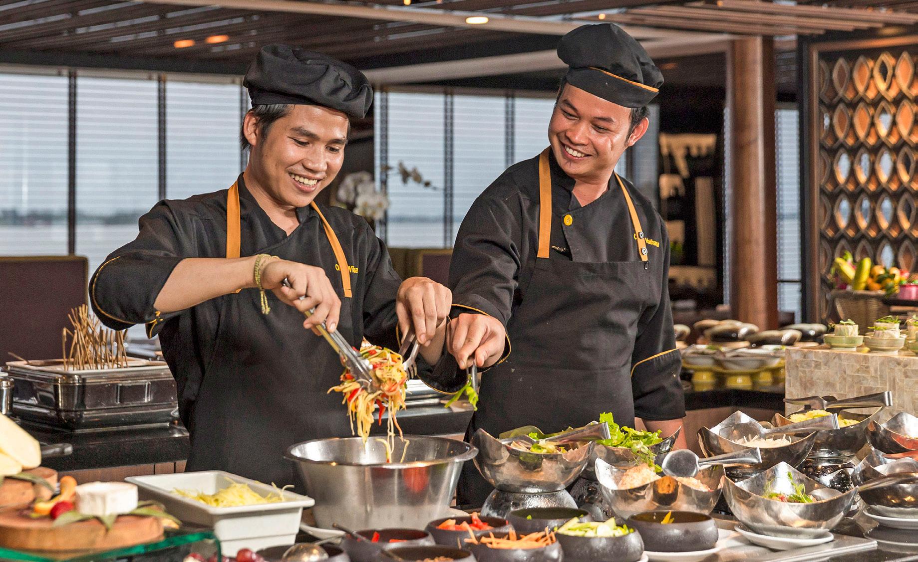Savour fine dining or casual fare at a choice of on board venues; or dine in the privacy of your own suite. Our chefs draw flavoursome ingredients from our herb garden, tailoring dishes to include regional cuisine and Western favourites. The curious can try the exotic and unique as well as the flavours of tropical fruits at our juicing station.