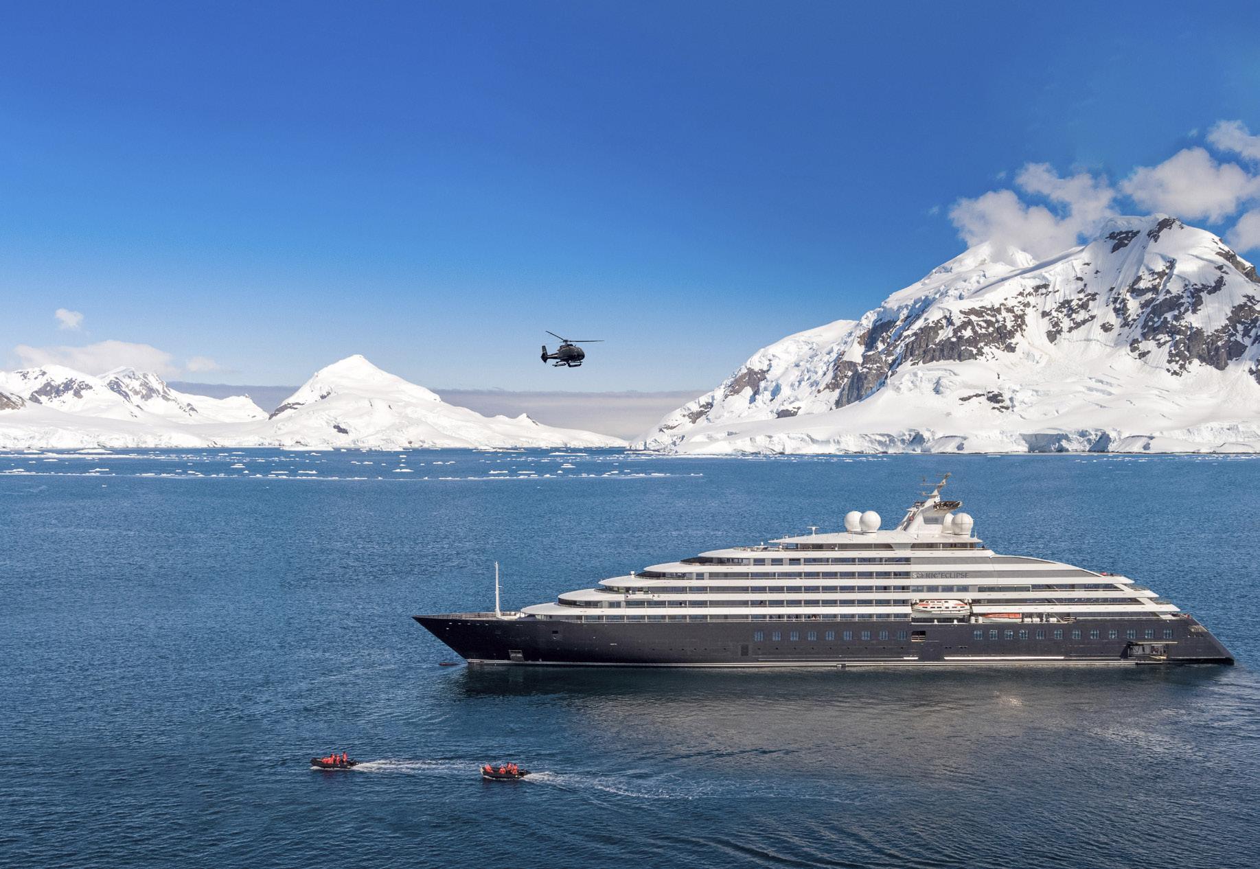 Venture into the world’s vast oceans on board the 6-star, ultra-luxury Scenic Eclipse, The World’s First Discovery Yachts™. Explore all seven continents, from Antarctica to the Arctic, Americas, Japan, Europe and the Mediterranean, Australia and the Pacific. Scenic Eclipse sets the benchmark in ultraluxury ocean cruising, taking guests further by soaring above the horizon in our on board helicopters for aerial flightseeing, or below the waters in our submarine, Scenic Neptune.