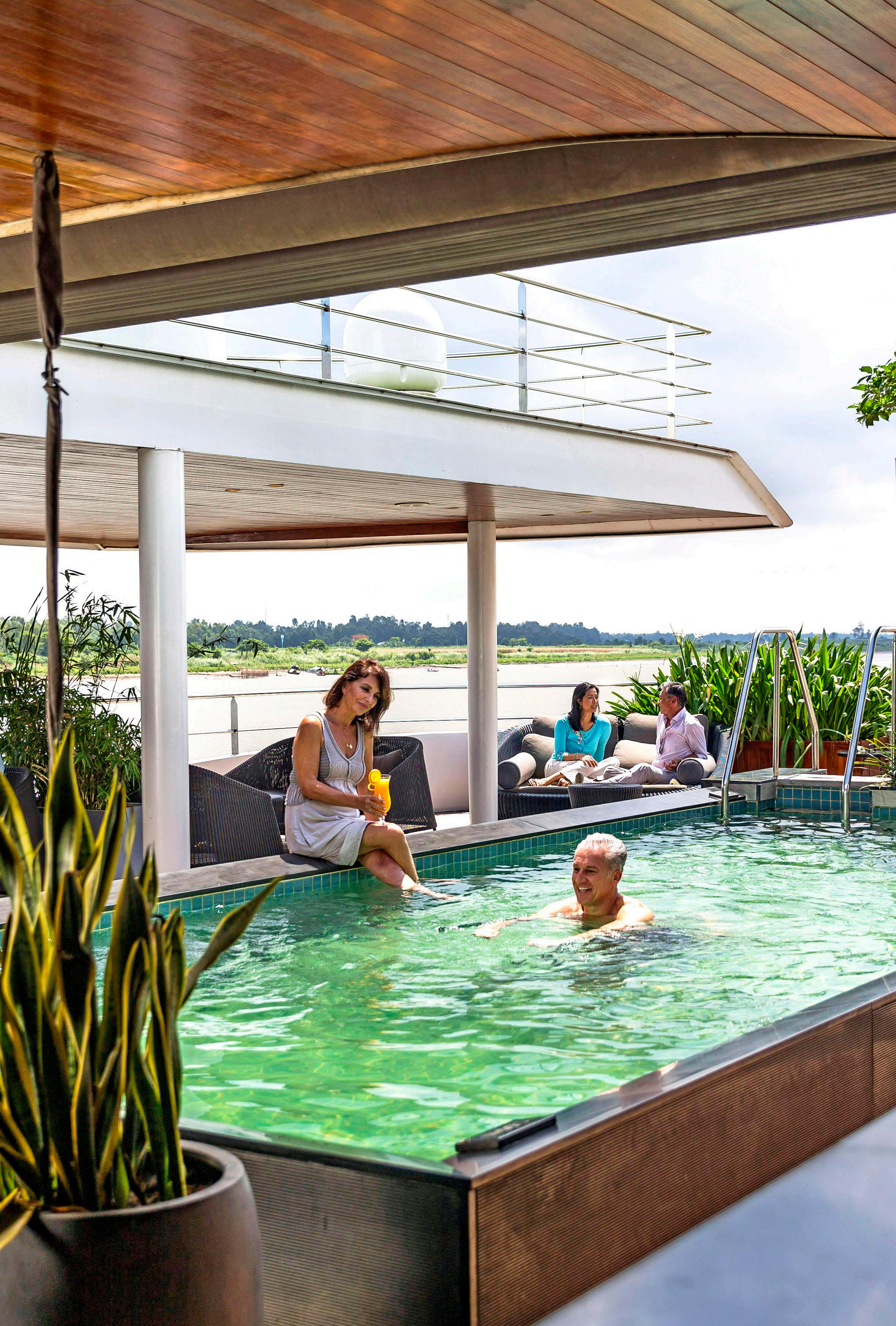 You may be enticed to take a dip in the refreshing Vitality Pool on warm afternoons floating along the Mekong, so be sure to pack your swimwear.