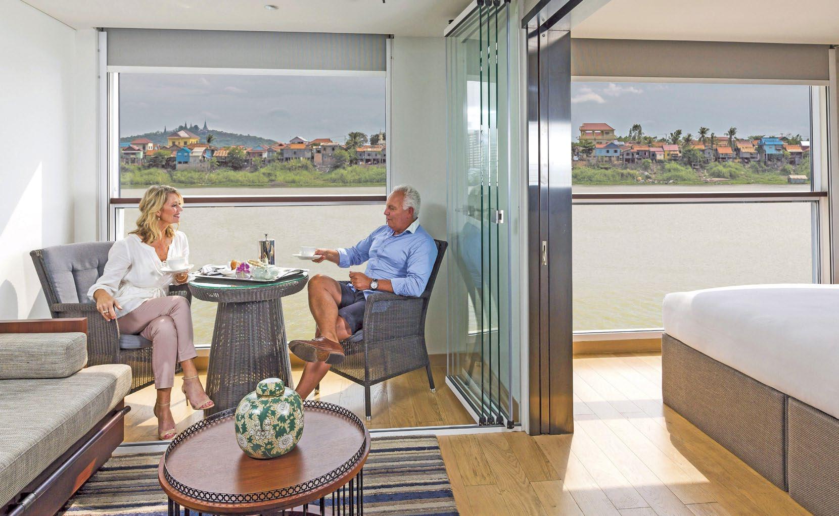After an exciting day exploring the mighty Mekong River, return to your personal retreat. Each spacious suite features the finest luxury amenities and butler service. Relax and be immersed in the diverse scenery along this spectacular waterway.