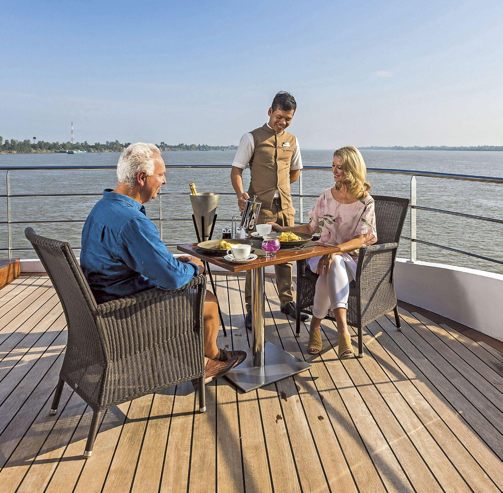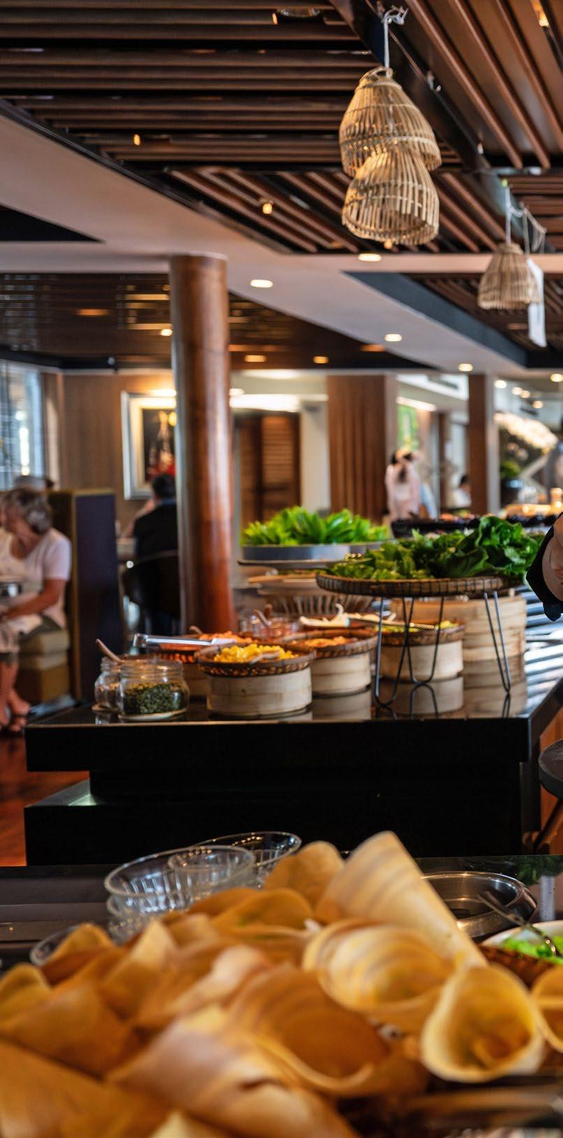 Enjoy the largest selection of included premium international beverages on the Mekong. Let your skilled mixologists create fabulous cocktails and mocktails and, for an infusion of goodness, visit the breakfast juice bar.