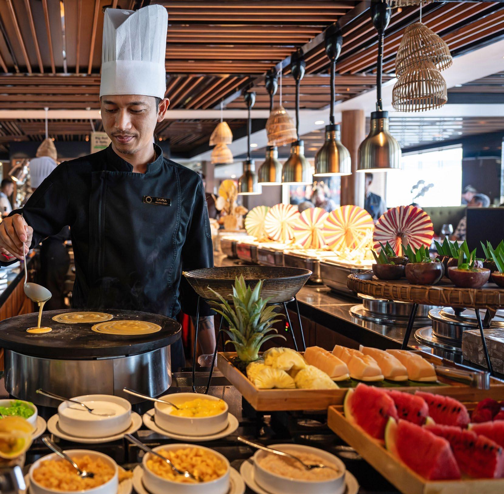 The main restaurant offers a relaxed atmosphere, serving all meals with open seating. Enjoy à la carte menus and themed lunches and dinners, including exotic street food.