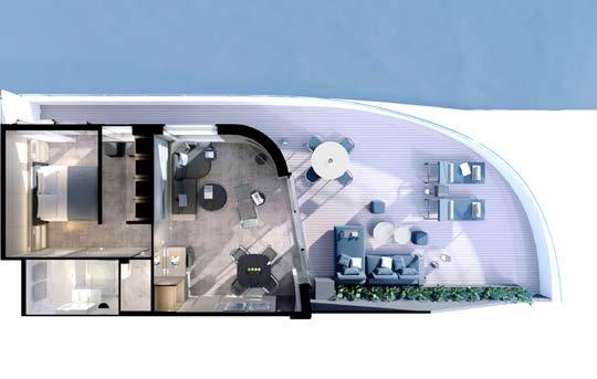 With dazzling views and oversized proportions, the Owner’s Suite is the largest and most prestigious on board. Positioned on the Pool Deck, it boasts a vast private terrace where you can relax and soak up the scenery in style. Inside, there’s a separate bedroom, plush walk-in robe and lounge area.