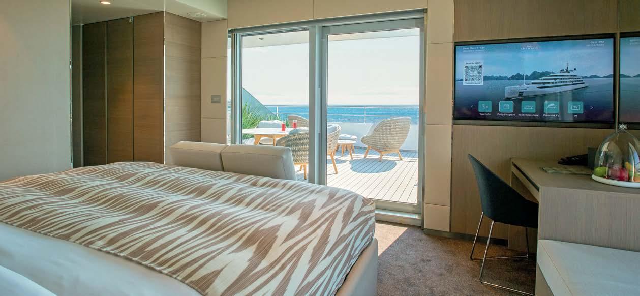 Relish the sea breeze and the sensational views from the generous private terrace of your Yacht Suite, positioned just aft of the Observation Deck. This spacious suite is one of the most opulent and has a walk-in wardrobe, plush bed and plenty of luxury inclusions such as a complimentary bottle of Champagne.