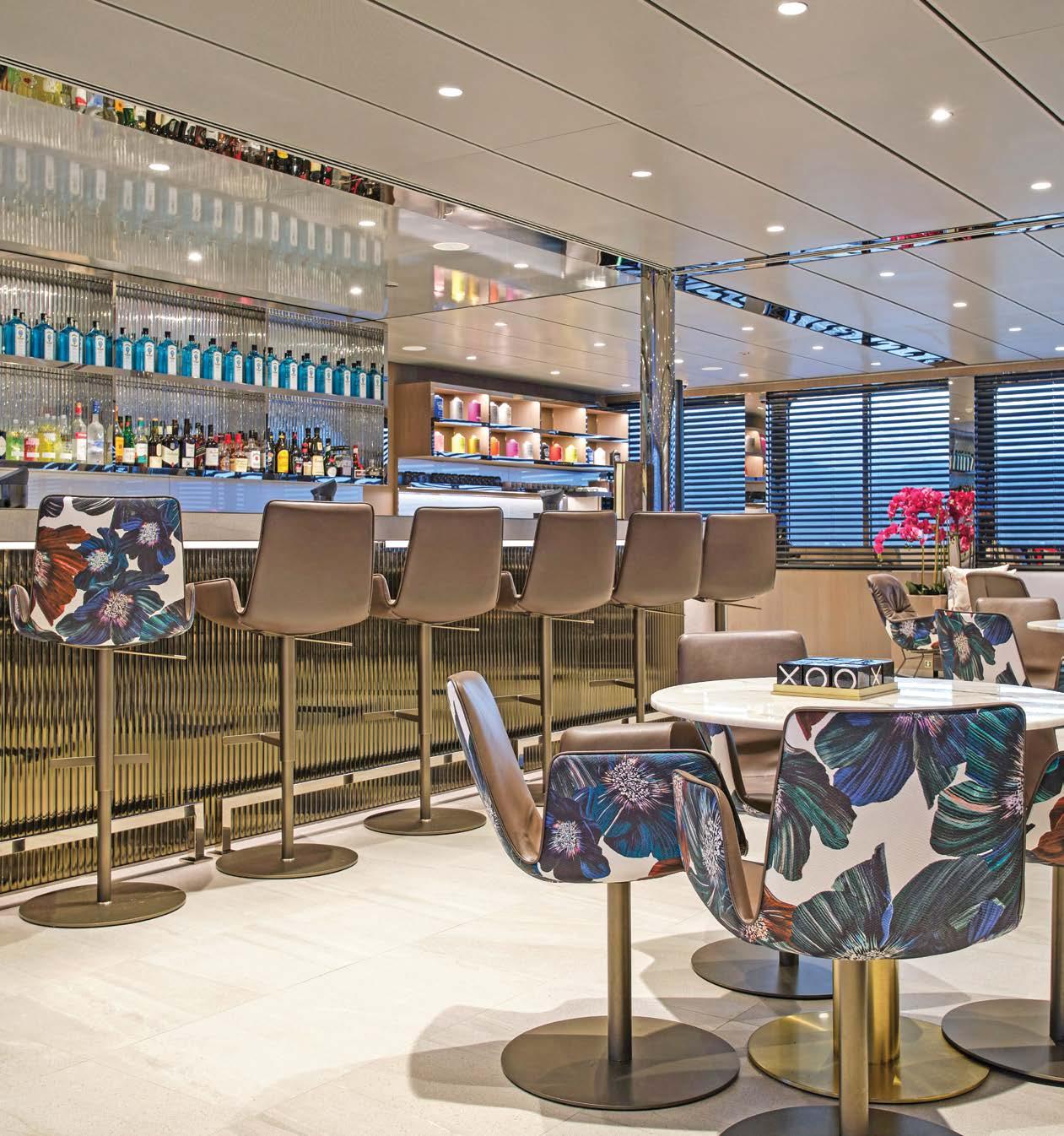 On board, the open-air infinity pool is surrounded by deluxe day beds perfect for enjoying a cocktail from the nearby Aqua Café. A wellness deck complete with spa, infrared sauna and gym helps to support your health and fitness goals, while the top deck Sky Bar provides a magnificent spot to watch the sun set.