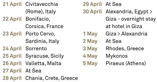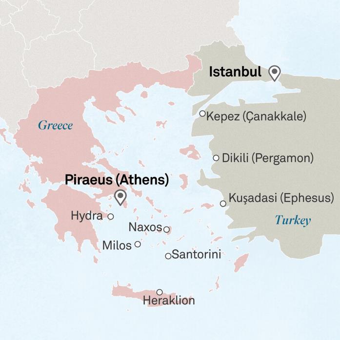 The perfect blend of iconic destinations with little hidden gems of the Aegean, visiting 7 Greek ports with overnights in Rhodes and Kos, and 3 Turkish ports with a late sail from Kuşadasi.