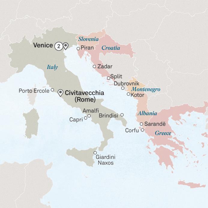 Embark on a vibrant voyage across 5 countries from Italy to Greece.