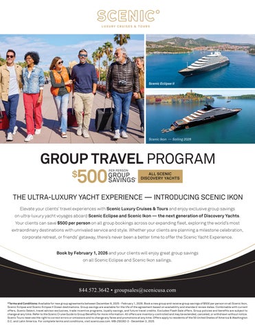 Elevate your clients’ travel experiences with Scenic Luxury Cruises & Tours and enjoy exclusive group savings on ultra-luxury yacht voyages aboard Scenic Eclipse and Scenic Ikon — the next generation of Discovery Yachts Your clients can save $500 per person on all group bookings across our expanding fleet, exploring the world’s most extraordinary destinations with unrivaled service and style. Whether your clients are planning a milestone celebration, corporate retreat, or friends’ getaway, there’s never been a better time to offer the Scenic Yacht Experience.