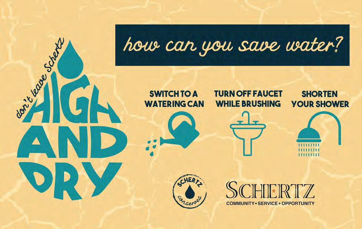 Articles that appear in Schertz Magazine do not necessarily reflect the official position of the City of Schertz and does not constitute an endorsement therein. The appearance of any advertisement in Schertz Magazine does not constitute an endorsement of the goods or services advertised. Any publication of Schertz Magazine, whether draft or final is sole property of the City of Schertz and cannot be reproduced or distributed in any way, whether in print or electronically, without the express permission and written consent of the City of Schertz.