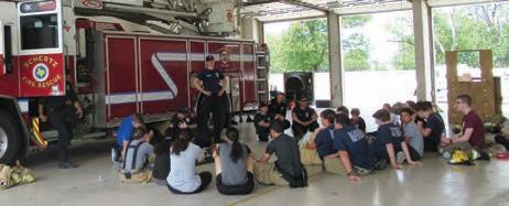 training with several Schertz fire staff to experience what a firefighter does daily. Students were introduced to a variety of firefighting skills including fire streams, vehicle extrication, thermal imagery, pumping operations, fire extinguisher training, fire chemistry, and fire prevention. Students were also able to participate in a number of fire-related activities including a visit to the fire safety house, getting hands-on by putting on hazmat suits and learning about specialized hazmat skills, and participating in search and rescue exercises. Other academy activities included a lesson on fire service history, a physical agility test, ladder exercises and ropes, confined space, repelling, and rope rescue training led by our firefighters.