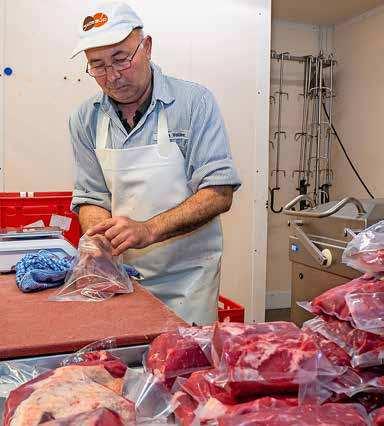 Eben frisch zerlegt, gleich verkaufsfertig: Ein Mitarbeiter der Hausschlachterei Miesner verpackt das Rindfleisch.