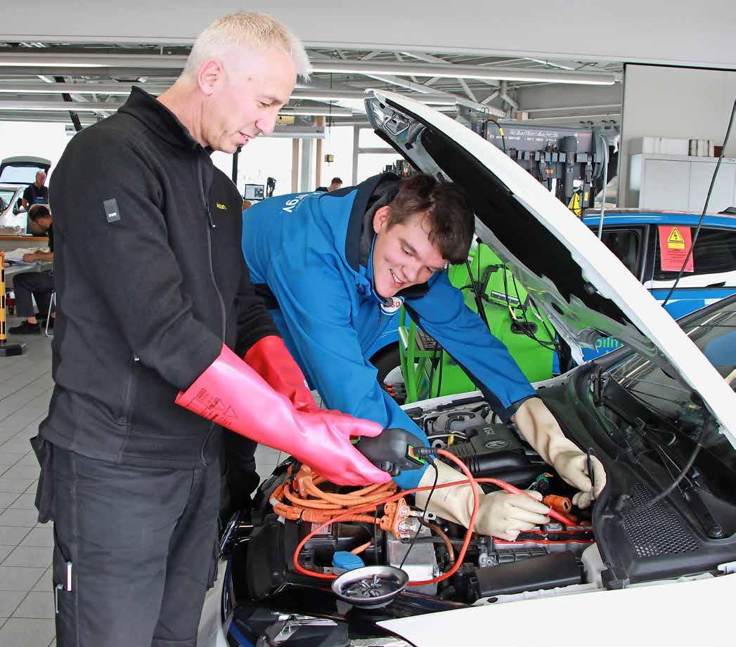 Carl Hapke aus Celle hat seinen Hochvoltlehrgang erfolgreich absolviert. Es ist nicht das erste Mal, dass der 22-Jährige im Technologiezentrum in Lüneburg die Kraftfahrzeug-Lehrwerkstatt besucht, folgen soll nun bald die Meistervorbereitung. Während der Überbetrieblichen Lehrlingsunterweisung (ÜLU) profitierte er schon von moderner Werkstattausstattung und dem Wissen der Dozenten vor Ort, sagt er. Dem stimmt auch sein Vater Thomas Hapke zu: „Meine Auszubildenden kommen von ihren Lehrgängen und Schulungen mit viel Wissen zurück in den Betrieb.“ Das werde dann sofort eingesetzt und weitervermittelt.
