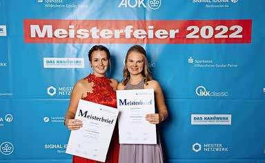 wWeitere Informationen: Die Namen aller Meisterinnen und Meister finden Sie unter www.hwk-hildesheim.de/meister22. Unterstützt wurde die Meisterfeier in diesem Jahr durch folgende Partner: AOK Niedersachsen, IKK Classic, Signal Iduna & Sparkasse Hildesheim-Goslar-Peine
