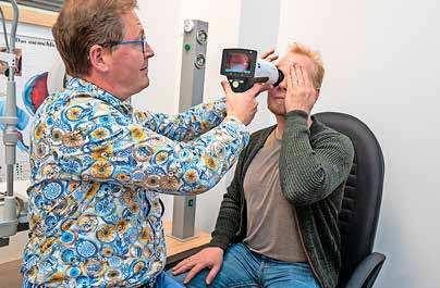 Narbe liegt zum Glück knapp in einem Randbereich, wo sie das Sehen nicht beeinträchtigt. Am Ende wird noch ein Netzhaut-Scan durchgeführt. Der könnte beispielsweise Hinweise auf einen grünen Star oder eine Makula-Degeneration geben. Diagnosen zu Krankheitsbildern stellt der staatlich anerkannte Augenoptiker natürlich nicht. „Das ist ganz klar Sache der Augenärzte“, sagt Dirk Bergner. Bemerkt er bei Kunden jedoch Auffälligkeiten, rät er ihnen dringend, einen Augenarzt aufzusuchen – und hilft mitunter, einen Termin in einer Praxis zu organisieren. Über die Jahre habe der Betrieb eine gute Beziehung zu Augenärzten aufgebaut. „Manche Praxis hat uns schon in kompletter