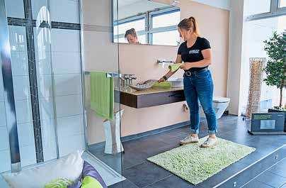 Ein Badezimmerbereich im Showroom soll auf die weiteren Leistungen des Betriebs aufmerksam machen.