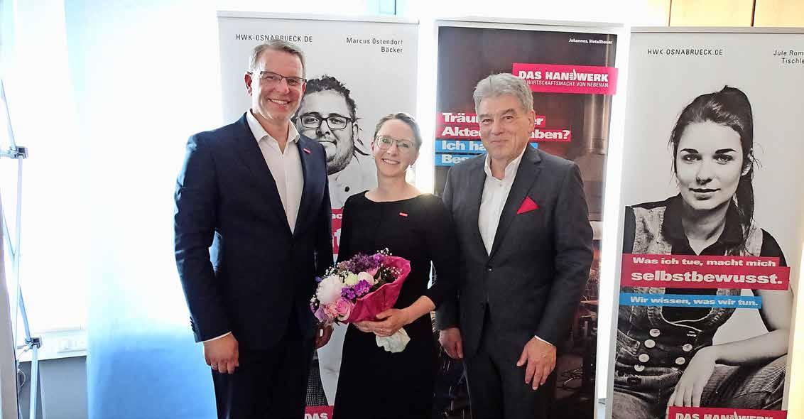 Zur neuen stellvertretenden Hauptgeschäftsführerin wurde Anna Brockhoff gewählt. Die 43-jährige Juristin ist seit 2020 Geschäftsführerin für die Abteilungen Berufsbildung, Recht und Handwerksrolle. Sie übernimmt die Aufgaben turnusmäßig nach drei Jahren von Peter Beckmann, Geschäftsführer des Dezernats Betriebsberatung und Strukturförderung.