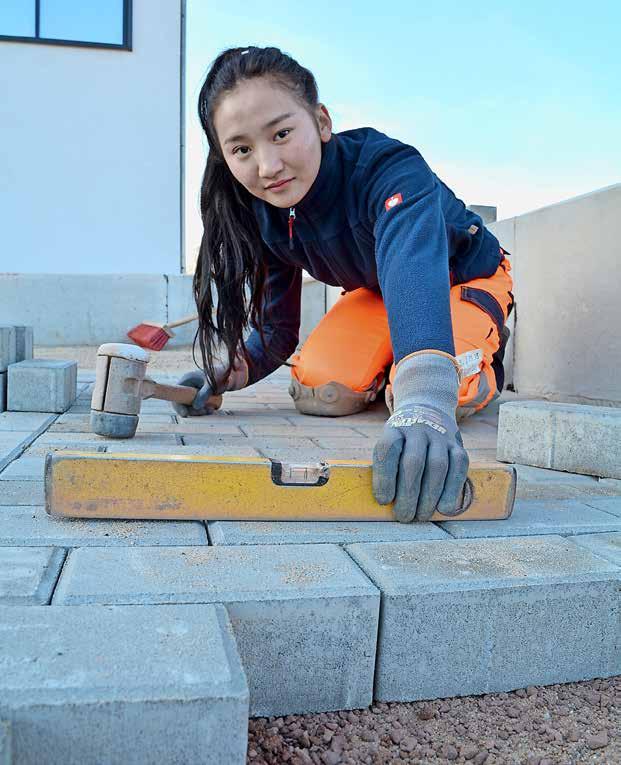 Ihre Ausbildung schloss Jargalmaa als Landesbeste ab und trat Mitte November mit acht weiteren Landessiegern beim Bundes wettbewerb in Berlin an. Die Aufgabe: eine Gehwegfläche entspre chend der Vorgabe fachgerecht herstellen, sehr anspruchsvoll, ver steht sich. „Ich habe acht Stunden geschwitzt“, berichtet Jargalmaa. Am Ende reichte es nicht für das Sieger-Podest, doch ist Jar galmaa zufrieden mit ihrer Leistung und vor allem sehr glücklich über das, was sie auf dem Bau erlebt und gelernt hat: „Das Beste an meiner Ausbildung waren meine Kollegen, meine Lehrer und Lehrmeister, alles warmherzige und kluge Menschen, ich bin ihnen sehr dankbar.“