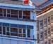 der Concordia-Versicherungen von Olaf Mahlstedt, manchmal humorvoll gebrochen. „STOSSEN“, steht auf einem Türdrücker. Und ein einsamer Plastikbügel hängt in der ansonsten sehr gradlinigen Garderobe. Dazu die Texte von Sebastian Hoff. Wahr oder nicht? „Alle sind so wahr wie erfunden.“ Heißt es am Schluss des Buchs. Sie könnten wahr sein, das reicht. Wie die Geschichte von Kerstin, die den Schlüssel zu einem Familiengeheimnis findet, verborgen im wundervollen Schließfachkeller der Deutschen, ehemals Hannoverschen Bank am Georgsplatz, fotografiert von Marc Theis. Hoff lässt Carl Hornemann zu Wort kommen, den Pelikan-Gründer. „Blaues Blut“ hat er den detailverliebt tintenblau gesetzten Text überschrieben, zu den Bildern des Saals im Pelikan-Tintenturm mit seinem großen, fantastischen Buntglasfenster (Theis). Aber es sind eben nicht nur die alten Gebäude. Nicht nur das, was von der doppelten Zerstörung übriggelassen wurde. Olaf Mahlstedt hat das ehemalige Postscheckamt an der Goseriede fotografiert, Sebastian Hoff dazu einen Abschiedsbrief(!) geschrieben, der den Umzug der Belegschaft an ihre neuen Arbeitsplätze in Hameln zum Thema hat. Ebenfalls aus den 70er Jahren stammt die IGS Mühlenberg, bunt, bunt, bunt im Gegensatz zu den teils klinischen Bildern des Postscheckamtes. Und wieder bricht Mahlstedt die strenge IGS-Architektur: „Vorsicht Kunst!“, ein knallgelbes Plakat im rotweißen Treppenhaus.