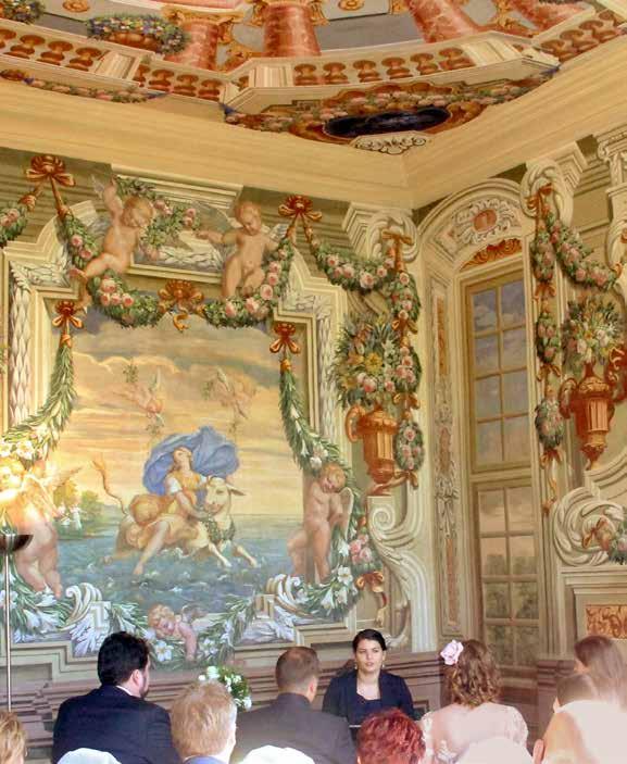 ImNebenzimmerdesGaleriegebäudes könnensichPaaretrauenlassen.DieKulisse desGroßenGartensnutzenanschließend vielePaarefürErinnerungsfotos.