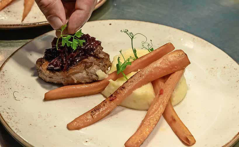 GENUSSVOLL Die Nobilis kocht mit Benjamin Kettmann Kalbsentrecote, Kartoffelpüree und Karottengemüse.