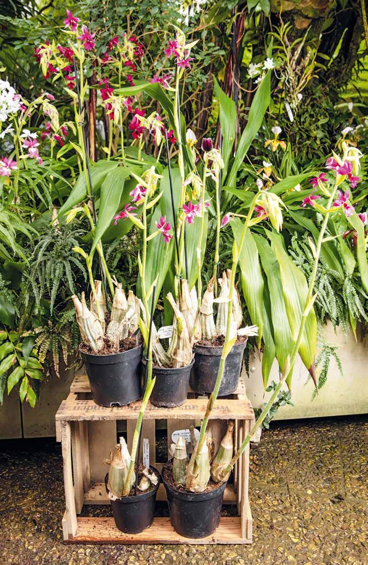Die kleinsten Orchideen drängeln sich auf einem Stück Holz; die größeren fühlen sich auch in Töpfen wohl.