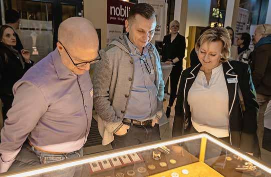 Gold fasziniert. Gold interessiert: Beim exklusiven „Nobilis meets Degussa“-Event hatten dreißig geladene Gäste die Chance, nicht nur einmal ein Kilogramm Gold im Wert von 60.000 Euro in die Hand zu nehmen, sondern konnten erfahren, wie Gold auf Echtheit überprüft wird. „Wir verkaufen nämlich nicht nur Gold, wir kaufen es auch an“, erklärt Thorsten Straller-von Kersten, Chef von Degussa in Hannover. Ein Highlight des Abends war für viele Gäste die große Schließfachanlage, hinter der sich kostbare Schmuckstücke verbergen. „Es ist eine sehr moderne Anlage mit hohen Sicherheitsstandards“, verrät Straller-von Kersten stolz, der für diesen Abend ein wunderbares Programm für die Gäste erdacht hatte: So konnten sie nicht nur einiges über das Edelmetall erfahren –die weltweiten Vorkommen an Gold zusammengepresst würden einen Würfel mit einer Kantenlänge von etwa 22 Metern ergeben –, sondern auch selbst einmal schätzen, was zwei Armbänder, ein Kettenanhänger und ein Ring wert wären. Als Preis für diejenigen, die dem wahren Wert am nächsten kamen, gab es Silbermünzen. Eva Maria Behrendt vom Juwelier Niessing war eine der Gewinnerinnen. Sie freute sich sehr. „Natürlich wird die Münze nicht in Schmuck umgearbeitet!“, meinte sie lachend. Auch Luzie Kloepper von Antenne Niedersachsen, Oliver Daelen von MMC Immobilien und die Tochter von Kieferorthopädin Sabine Steding, Sophie Häckelmann, konnten Münzen mit nach Hause nehmen. Doch auch die anderen Gäste gingen nicht leer aus: Wer sich auf den Heimweg machte, bekam nicht nur Goldbären mit, sondern auch ein kleines goldenes Täfelchen und eine Kladde für die genaue Buchführung.