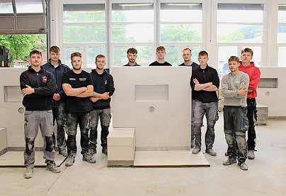 Innerhalb von zweieinhalb Arbeitstagen mussten die Prüflinge eine etwa eineinhalb MeterhoheMauereckeerrichten,die einseitigverfliestundabgedecktwurde.Zusätzlich wurdeeineSitzbankangefertigt.DieWandfliesenwurdenimDickbettverfahrenangesetzt, währendderBodenmitEstrichversehenund verfliest wurde. Präzision, ein gleichmäßigesFugenbildundeinesaubereSchnitttechnik waren gefragt. Bestandenhaben: Neels Ennen(Holtgast),MarvinFischer(Berumbur),