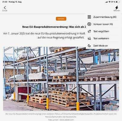 NeueFormdesE-PapersundderApp Die digitale Ausgabe der Zeitung – mit dem E-PaperundderdazugehörigenApp–werden im kommenden Jahr auf einer neuen Plattform erscheinen (siehe Screenshots rechts). Dazu gehören auch neue Funktionen, die durch eine Künstliche Intelligenz gestützt sind.Künftigwirdesbeispielsweisemöglich sein, eine Zusammenfassung der Themen einerAusgabezuerhalten.Zudemkanndurch dieReader-FunktionjederArtikelvorgelesen werden. Auf Wunsch fasst die KI auch den Inhalt jedes Artikels zusammen.