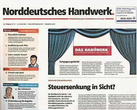 In jeder Ausgabe des Norddeutschen HandwerksbereitetdieRedaktionTexteund Themenauf,dieBetriebeinderBetriebsführung unterstützen und gibt ihnenTipps und nutzwerte Artikel als Lösungsvorschläge an die Hand. Auch mit dem Online-Angebot handwerk.com,demNewsletter,Push-NachrichtenundderbegleitendenAppHandwerk finden die Betriebe ein vielseitiges Informationsangebot zu den täglichen Herausforderungen im Handwerk vor.