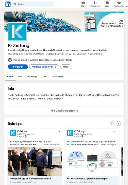Der Web-Auftritt der K-ZEITUNG ist das umfassende, kompakte und aktuelle Branchen- und Meinungsportal der Kunststoffindustrie mit täglich aktuellen Hintergrundberichten aus den Bereichen Wirtschaft, Branche, Technologie und Anwendungen. je Aussendung (Stand Juli 2024)