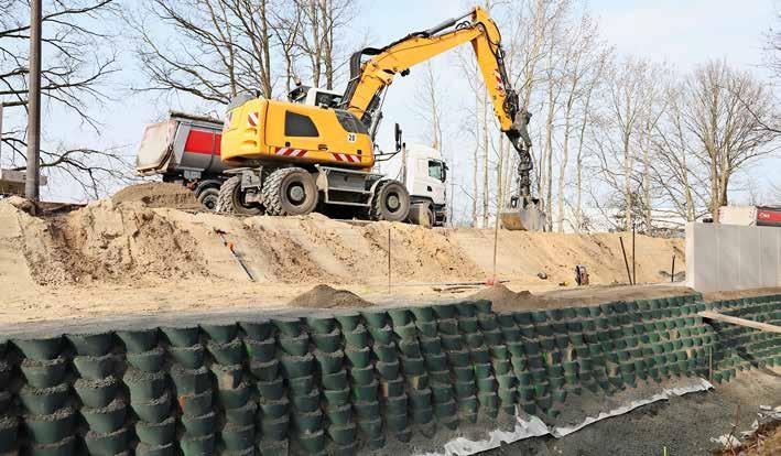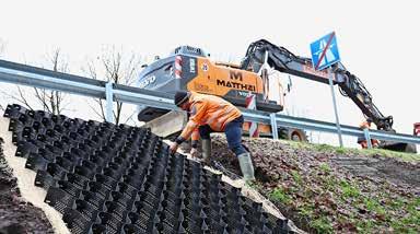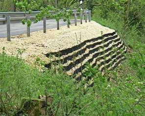 Anwendungsbereiche: Bankett- und Böschungsstabilisierung, Erosionsschutz, Gründungspolster, RRB, Stützwände, Tragfähigkeitserhöhung und Wegebau.