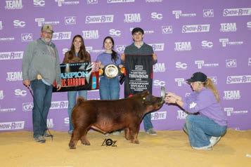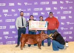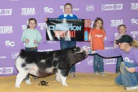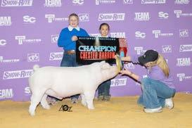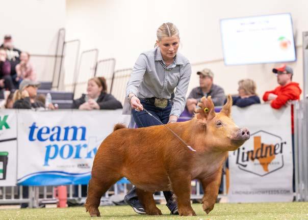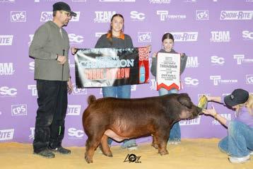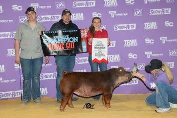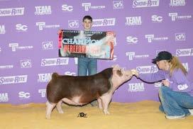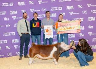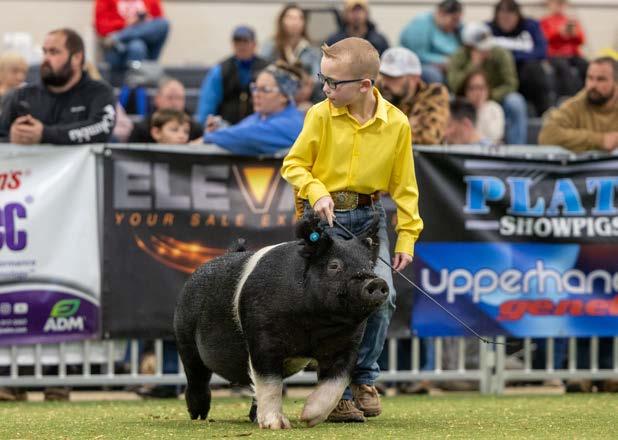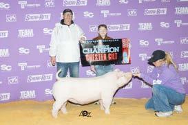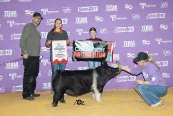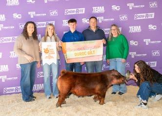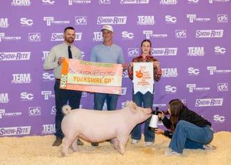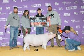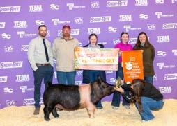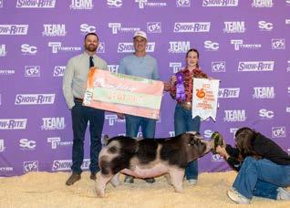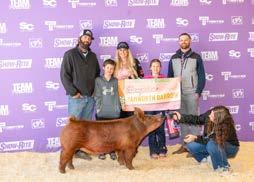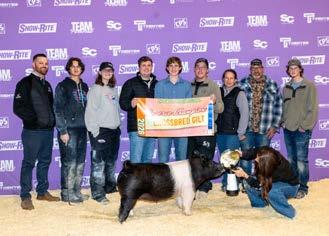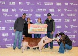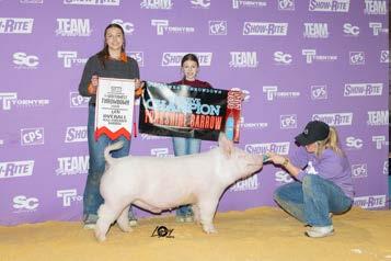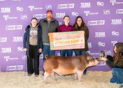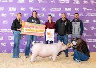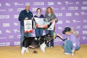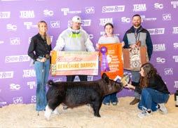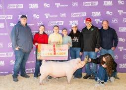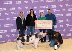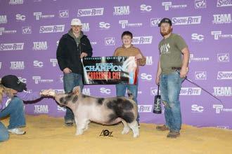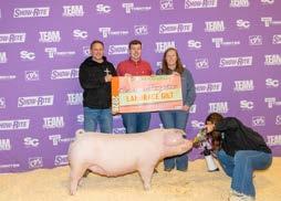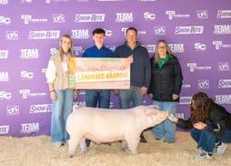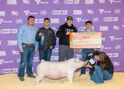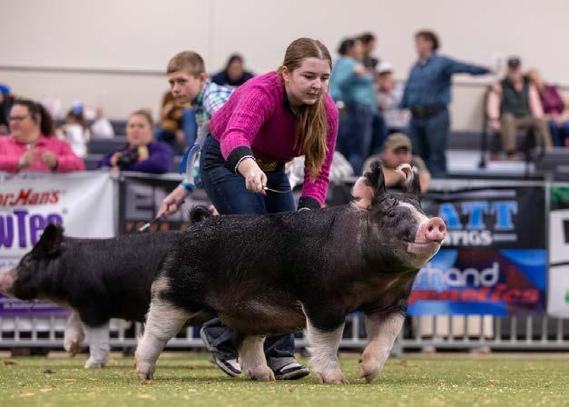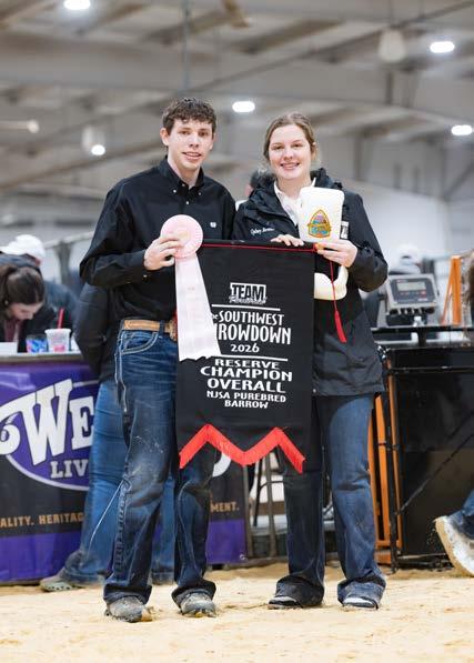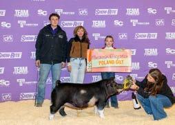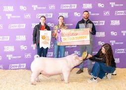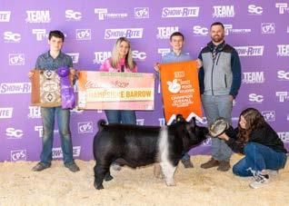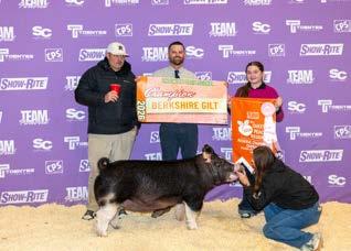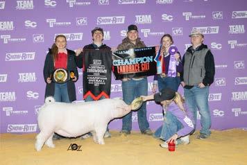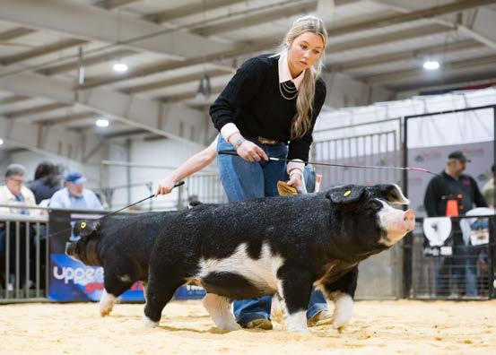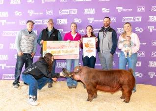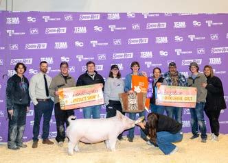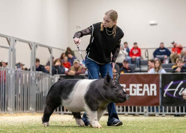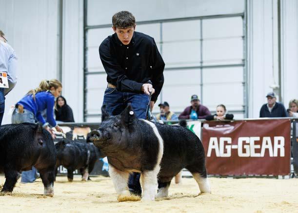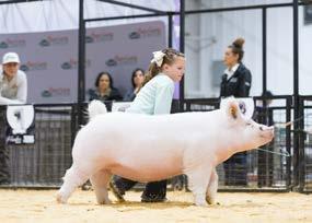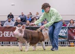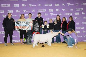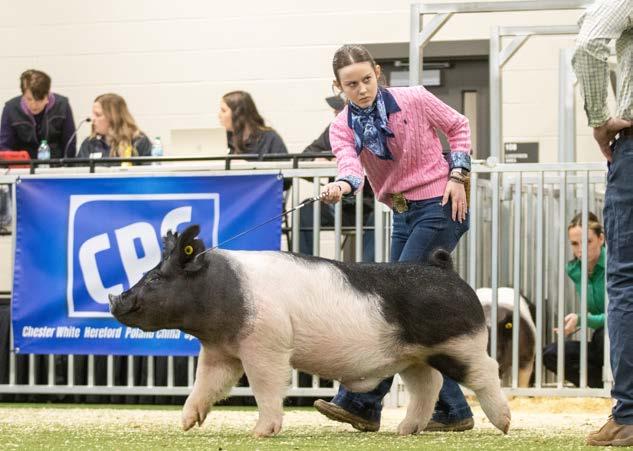 The last two years I have had the opportunity to join the team at the Sweet Peach Regional. It very quickly became one of my favorite shows because as a Midwest resident, it is really nice to travel south for some sunshine and warmer weather during the thick of winter. The team arrived at the brand new facility onThursdayafternoon,weweregreetedwithsunshineandone of the best facility crews we have had the chance to work with. After getting things settled in on Thursday, we moved into Fridaywherewehelpedgetexhibitorsandtheirfamiliessettled all afternoon and then quickly moved into breed typing and check in. Saturday morning came bright and early where we kicked off the day with the second round of breed typing and check-in. After everyone was checked in we moved very efficiently into the skillathon and judging contest and then rolled right into showmanship. After a few very tough showmanship divisions we quickly moved into the gilt show. The gilt show was full of quality, after selecting breed champions we moved into the cross grand drive and both of the grand drives. Following the gilt show champions being crowned, we moved right into sweepstakes where we awarded our very talented exhibitors. Our last day in the sunshine came onSundayasourjudgeMr.BenLenigcontinuedtosortthrough the deep quality of pigs exhibited. All that was left on Sunday was the barrow show that ended with the cross drive and both the NJSA and Team Purebred Grand Drives. After the show was over, the most dreaded part of all was commencing- tearing down and cleaning up. Once the team got everything cleaned up we said our goodbyes and talked about how we were ready to take on Fabulous Springfield! I can not wait to see you all there,teamandIhavesomanyexcitingthingscoming!