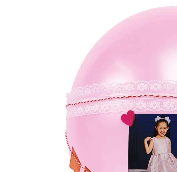 7. Add shredded paper, candy, and gifts to the basket. Finally, tape your favorite photo of your little one to the balloon.
