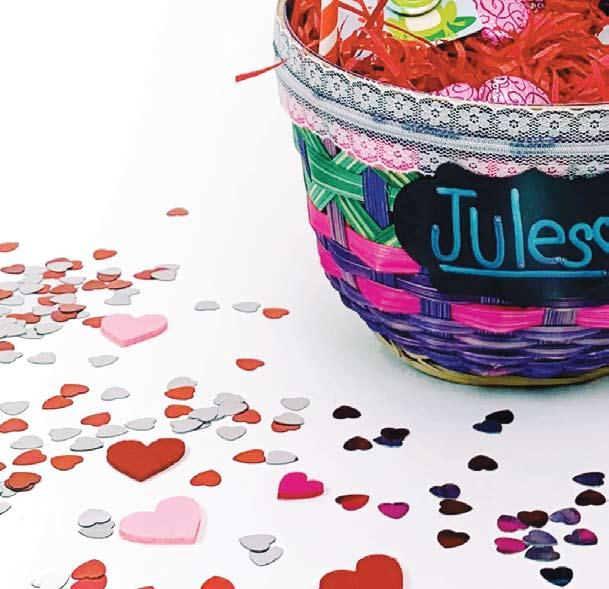 6. Write your little valentine’s name on the tag and use school glue to attach it to the side of the basket.