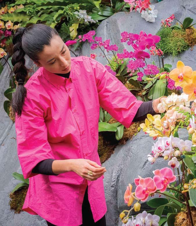 The horticulturalists and exhibitions staff members at NYBG have worked with Kwong to bring her vision to life by assembling selections of orchids native to Asian countries and companion plantings.