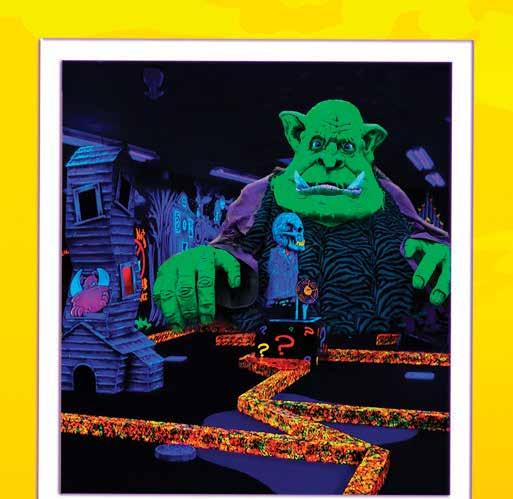 Cool off from the summer heat at this glowin-the-dark mini golf spot where kids will appreciate the monster theme decor where a game of mini golf is like no other. There is also bowling, arcade games, and attractions to extend the family fun! Open from noon to 10 pm every day.