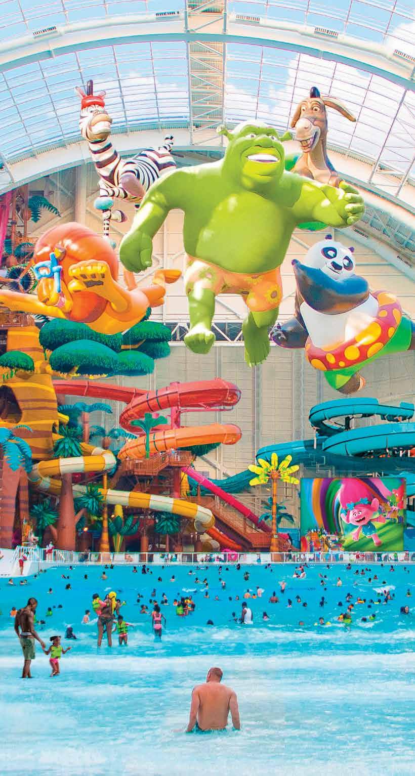 perfect here! Ride record-breaking coasters at the nation’s largest indoor theme park and ride the waves of the world’s largest indoor wave pool. Plus, you can shop hundreds of stores and dine at dozens of eateries.
