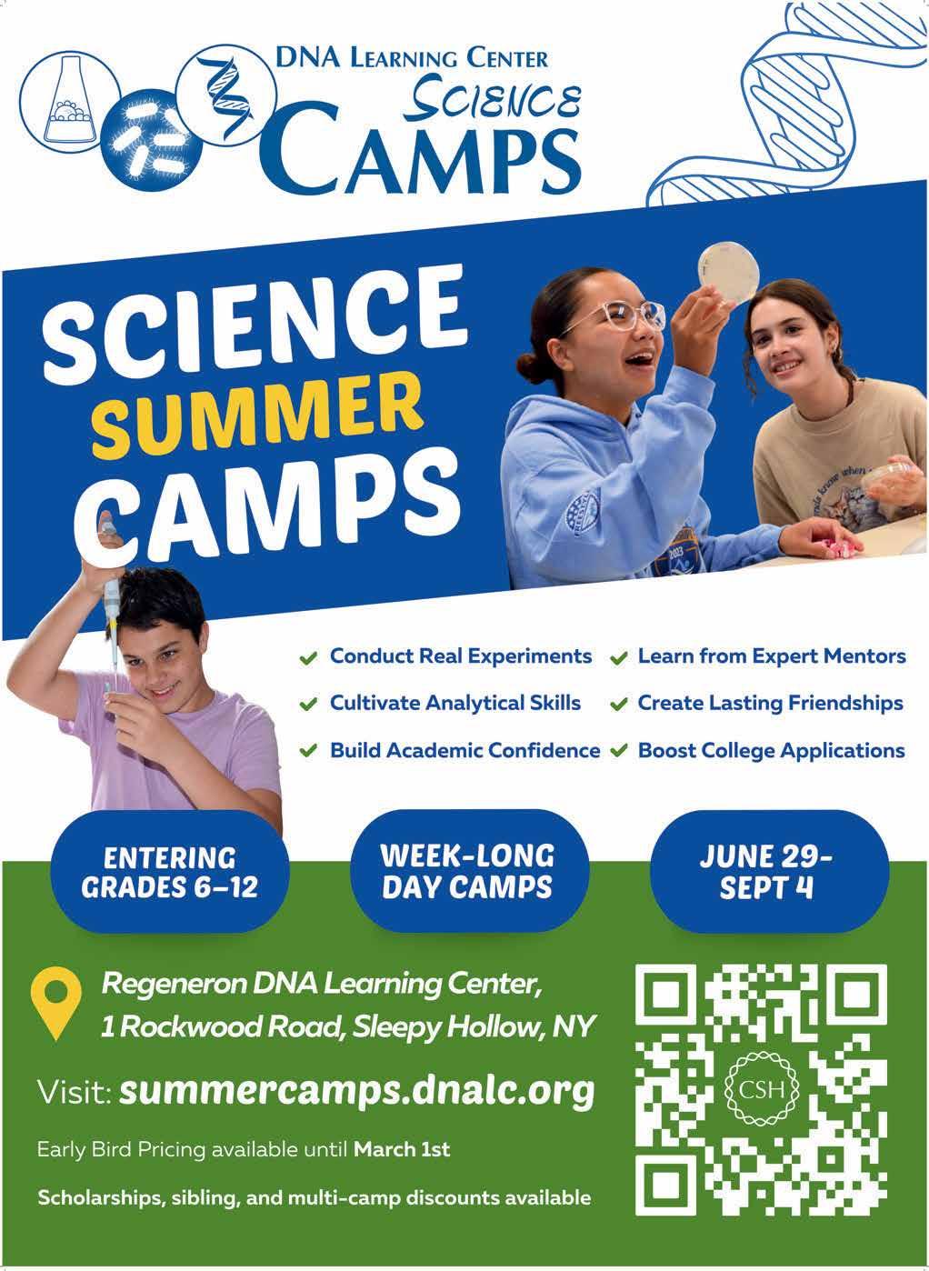 Join us at the Regeneron DNA Learning Center this summer for an immersive, five-day science experience and unravel the mysteries of life itself. Budding scientists entering 6th–12th grade will build real-world lab skills, boost their college profiles, and have a blast exploring the frontiers of biology. Their week-long day camps take place between June 29 and September 4, 2026. Scholarships, multi-camp, and sibling discounts are available.