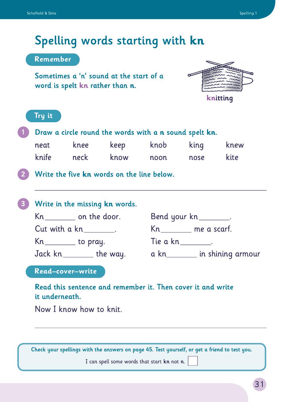 Each Spelling Pupil Book is divided into six sections containing five main pages that introduce new spelling conventions, followed by a Tricky words or Topic words page that focuses on particular words. Books 2 to 6 also feature regular Revision sections that use crossword-style clues, cloze and proofreading activities to elicit spellings that pupils should have mastered. The main pages in the pupil books have a simple and consistent structure comprising three parts: