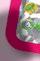 recipe book, 2 x 50g packets of slime, foam balls, mermaid tail charm topper, pop-out accessories sheet, 8 mini straw charms, mini cup.