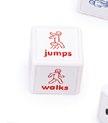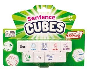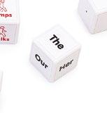 Students roll cubes to generate random sentences and practise sequencing words. 9 cubes.
