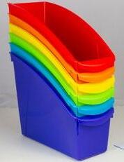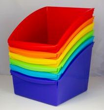 10 small book tubs in 10 colours, each 145mm W x 270mm L. Rear 245mm H, Front 120mm H. $89.90 TE $65.00