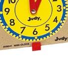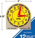 Each clock features moveable plastic hands mounted on a sturdy wooden base and includes an individual stand.