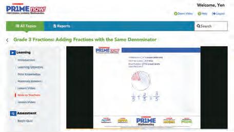 Professional Learning Now! provides on-demand professional development for teachers to learn mathematics pedagogy anytime, anywhere in the convenience and comfort of their home or in-between lessons, or just before teaching a topic. Each learning video is intentionally kept to approximately 5 minutes so that teachers will be able to quickly and effectively learn the pedagogy behind the concept to be taught. With a short quiz of 4 or 5 questions and a performance report, professional development is relevant and effective for teachers at any stage in their teaching career. Teachers can also re-watch learning videos to reinforce their pedagogical content knowledge anytime, anywhere.
